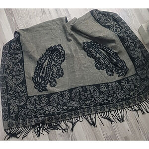 INDIGO SOUL Black Brown Paisley Fringed Wrap One Size Acrylic Shawl Open Poncho