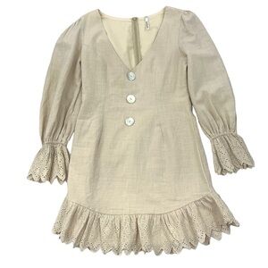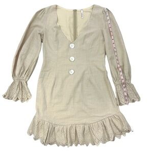 INDIKAH by Angel Biba Nude Low Cut U-neck Ruffle Linen Blend Mini Dress Medium