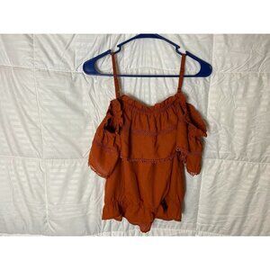 INDULGE WOMENS ROMANTIC OFF SHOULDER BLOUSE TOP SHIRT SIZE LARGE 12/14 RUFFLES