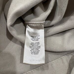 Khaki shirt jacket with front buttons. Includes dual chest pockets. Ideal for layering.