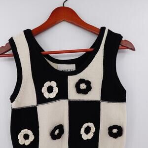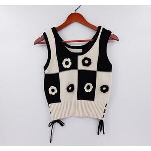INDUSTRY Vest Top Womens XS Cream Checkered Floral Crochet Mod Americana Artsy