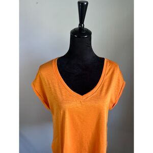 INDVEVA Women's Lua V Neck Clementine Rolled Sleeve Short Sleeve T Shirt Size M