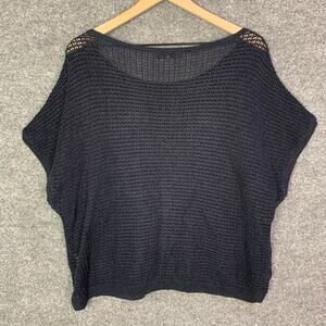 INED Women's Navy Blue Knit Short Sleeve Sweater Top Pullover Loose Fit Size 9