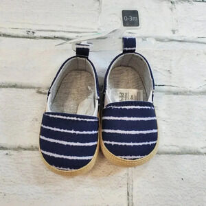 INFANT Blue and White Stripe Soft Sole Baby Shoes.