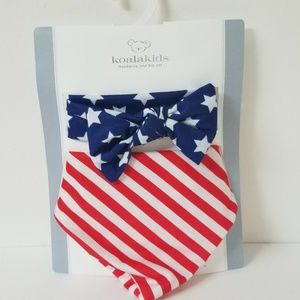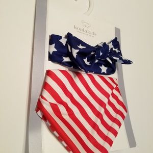 RED WHITE AND BLUE BABY HEAD WRAP AND BIB SET
