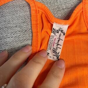 INFINATELY FREE PEOPLE Neon Orange Ribbed Tank Top Racerback Extra Small XS