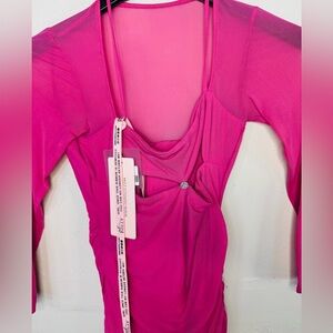 Designed in double layered stretch mesh fabric with alluring sheer mesh sleeves, Infinite Love also features bust flattering halterneck straps.