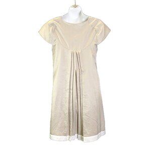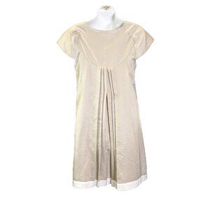 Designer dress from Infinitif Paris, made of woven polyester fabric with a solid pattern in beige color. Size US 6, EU 38.