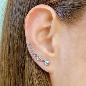 These ear climbers are handcrafted from sterling silver and simulated diamonds. Material: Sterling silver 925 rhodium plated Stones: White simulated diamondsColor: SilverSize of earrings: MediumEar climbers: Length: 2.5 cm/ 1 inch Width: 0.5 cm/0.2 inch.Additional Information: The bottom of the earring requires your ear to be pierced but the top can easily slide on your ear.All our products are handcrafted. Designed by Alex S.