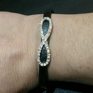 Infinity leather bracelet. In black with magnetic clasp. Trendy piece! Brand new
