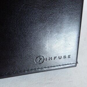 Used, Infuse brand, leather presentation / portfolio book. This high end presentation book protects the pages within with beautifully classic black, rigid covers and archival sheet protectors.