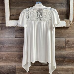 ING Ladies White Lace Trim Rayon Short Sleeve Asymmetrical Cardigan Size Small
