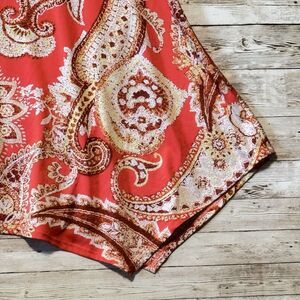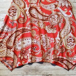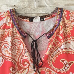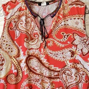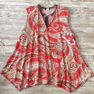 ING Sleeveless Blouse Tank Top Womens 2X Orange White Embroidered Tie Neck Tunic