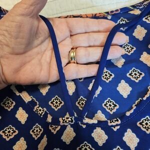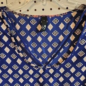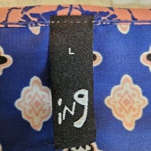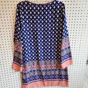 ING Women's Size L Blue Pink Printed Shift Dress BOHO Diamond Design Long Sleeve.