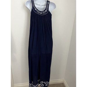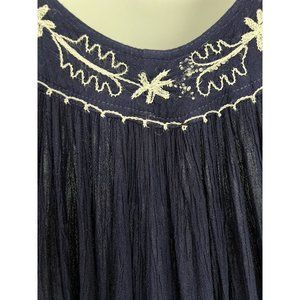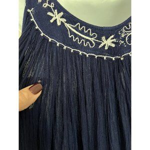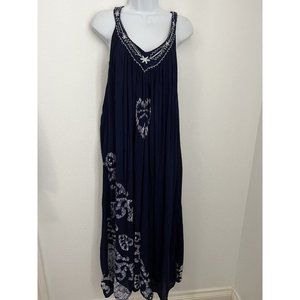 IN-GEAR Boho Navy Blue crinkle boho maxi dress hippie sleeveless embroidered OS