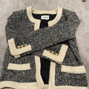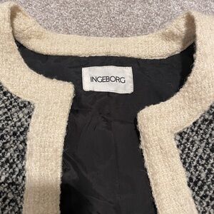 INGEBORG Tweed Lady Day Jacket XS/S hook and eye closure at collar with beautiful gold button accents on sleeves and real pockets.