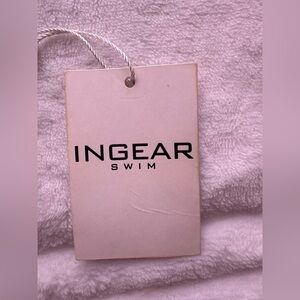 Embrace comfort and style with this floral green bralette. Perfect for everyday wear. INGEAR SWIM bikini top in green with a white floral pattern, size M. It features a halter neck tie and a tag indicating the brand and size. Since the question includes the brand, color, size, and style, and the image confirms these details, a comprehensive description can be provided. The bikini top is light green with small white floral prints and has a halter neck tie. The tag attached to the bikini top reads "INGEAR SWIM" and "M" for size medium.