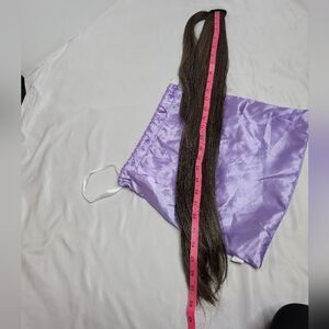 Insert Name Here INH Miya clip in ponytail extension in the color toffee. This pony has had a lot of use but could be easily trimmed. The bottom has breakage. Also this could be braided or worn in a bun and you wouldn't see the breakage. The bag is included.