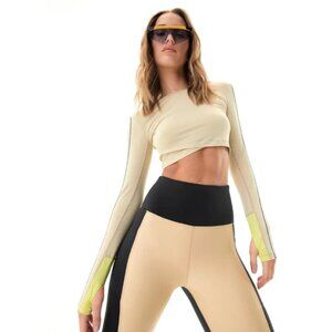 The Initialise LS Top in Gravel, from the On Assignment Collection, combines earthy tones with urban-inspired designs. This fitted, high-neck, cropped running top is a lightweight training essential featuring thumbholes, contrast color panels, and crossover waist detail. The P.E Nation logo adds a stylish touch to the front. Pair it with the Transmission Running Sports Bra or Initialise Running Legging for a complete look.