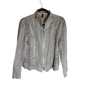 INIZIO OIZINI Italy 100% LINEN Sand Washed Flax JACKET ZIP FRONT Large L