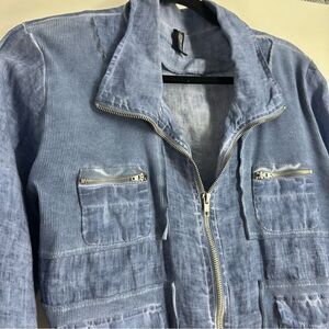 INIZIO Women’s Zip Linen Cropped Blue Light Jacket Sz L