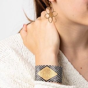 You can never go wrong with black, white, and gold! Our most classic color combo in this beautiful Luxe beaded bracelet is a no-brainer. Precision-cut glass beads bring a subtle shimmer to this statement piece to elevate your accessory game whether stacked with your other favorite bracelets or as a bold statement worn alone!