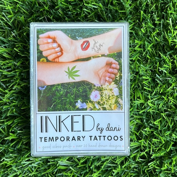 The coolness of a tattoo without the commitment! The Inked By Dani Good Vibes Temporary Tattoo Pack features various designs that are easy to apply to your skin.