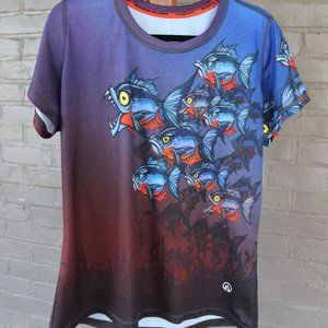 New Without Tags! INKnBURN Ink N Burn Size 2XL (12-14) "PIRANHA" TECH SHIRT Short Sleeve Running Shirt Top AWESOME Design! (Eat your competition alive! HA!)