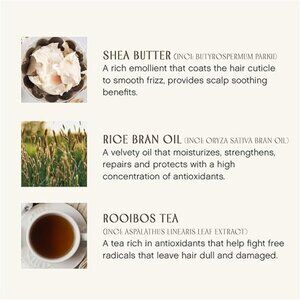 BENEFITS: Crafted With A Rich Blend Of Organic Shea Butter, Rice Bran Oil + Rooibos Tea For Moisture + Strength.
