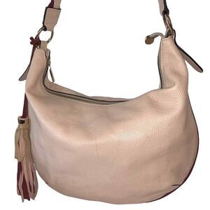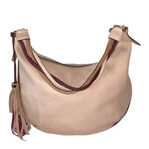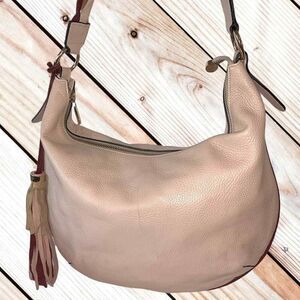 INNUE ITALIAN Leather Hobo Shoulder Bag With Tassel Blush With Wine Trim Hippy