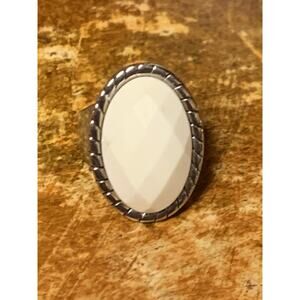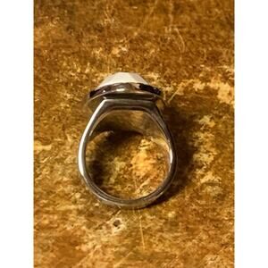 INOX Stainless Steel Silver and White Magnesite Ring Size 7
