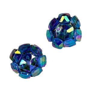 INSANELY Cool True Vintage Iridescent Aurora Borealis Crystal Clip Earrings