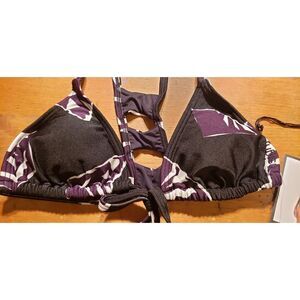 INSIGHT CHIPS LADDER BACK HALTER TOP BLACK CHIPS SWIM BIKINI TOP NWT