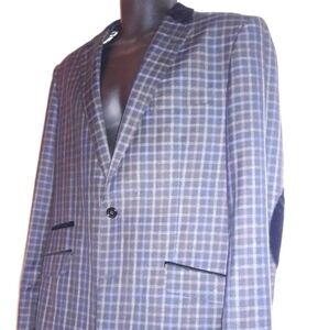 INSOMNIA MANZINO Grey Plaid Blazer, Black Velvet Accents, 40R