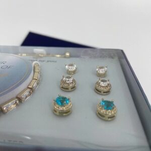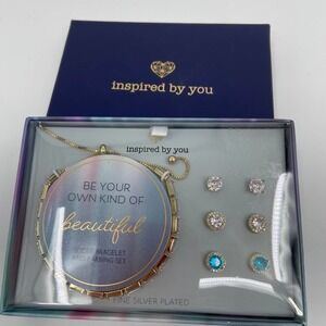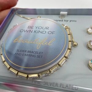 INSPIRED By You Fine Silver Plated Slider Bracelet & Earrings CZ's Gold Tone NEW