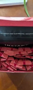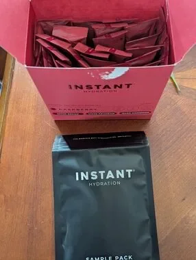 INSTANT Hydration Raspberry single-serve dissolvable powder sticks. This was a new 30-pack box. I tried 2 packets and just don't care for them. My loss is your gain! You will receive 28 Raspberry powder sticks. You will also receive an unopened sample pouch! Simply add to water for a perfect on-the-go electrolyte and flavor boost. Fresh until 7/2027.