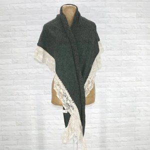 INSTYLE Wrap Scarf Rabbit Fur Blend Lace Trim Boho Winter Layer Soft Cozy Gray