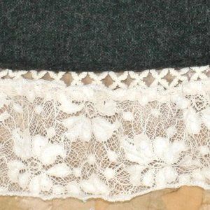Great neutral colors of grey with off white, ecru, or cream woven cut out trim and sheer floral lace