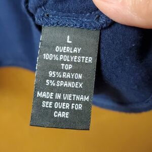 I.N. San Francisco ladies blouse, large, beautiful necklace attached, full blouse under, has chiffon overlay. Navy blue