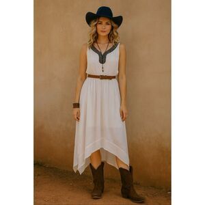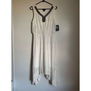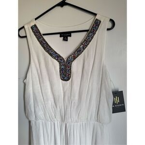 IN Studio White Gauzy Tiered Beaded Sequin Vneck Handkerchief Maxi Dress sz L