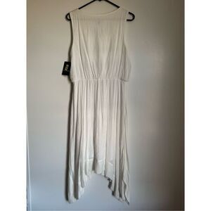 IN Studio White Gauzy Tiered Beaded Sequin Vneck Handkerchief Maxi Dress sz L Petite