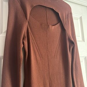 INTEMPO Plus Size Mockneck Cutout Sweater Dress Cinnamon 1X