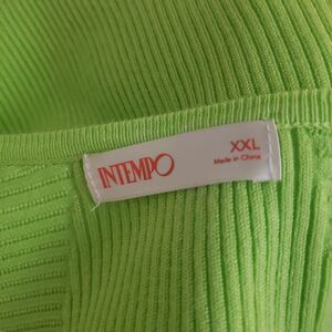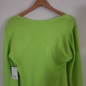 INTEMPO Ribbed Knit Sweater XXL Green Sweetheart Neck Casual Modern Chic