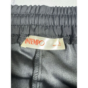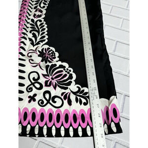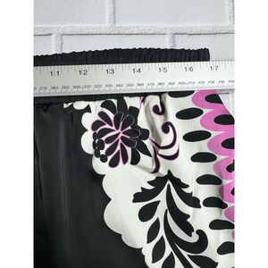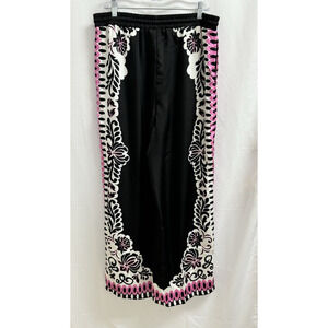 INTEMPO Wide Leg Elastic Waist Pants Black Pink Boarder Print Women's Size Large