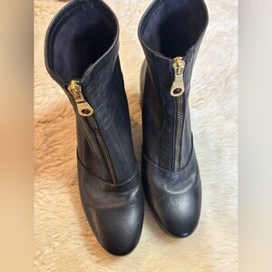 Sleek black ankle boots. Gold zipper detail. Chunky heel for comfort. Reposhing since they are too small for me, closer to 10.5 size!