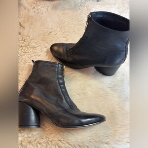 INTENTIONALLY BLANK Black Ankle Boots with Gold Zipper