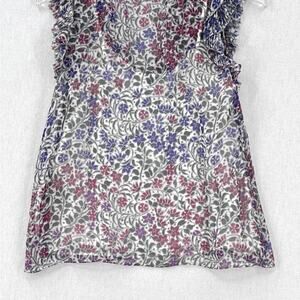 INTERMIX Dani Flutter Sleeve Top Women Small White Sheer Silk Floral Print Sheer