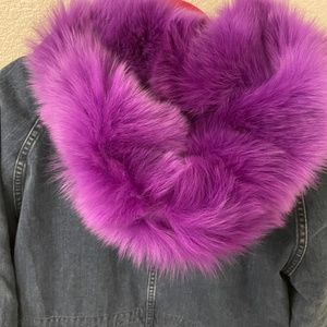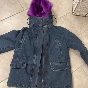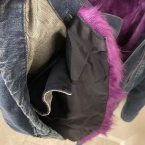 New with tags INTERMIX DENIM 3/4 coat with removable 100% purple lamb fur. Size 36 The coat is made with high-quality denim fabric and comes with removable lamb fur for versatility in styling.