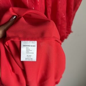 Our Gianna silk dress is striped in gold lurex for subtle hint of glamour. Ruffled V-neckline. Drawstring tie waist. Sheer blouson sleeves with ruffled cuffs. Lined through the body.