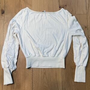 INTERMIX Khloe One-Shoulder Off-Shoulder Ivory Cream Scrunchy Sweatshirt